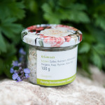 Zutaten: Unjodiertes Meersalz (60%), Bergbohnenkraut, Seewinkler Majoran, Pannonischer Oregano, Pannonischer Thymian, Weinviertler Koriander Samen, Zwiebel, Liebstöckel.
