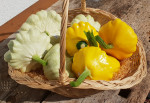 Die Sunburst Kürbisse auch UFO genannt eignen sich als Rohkost, zum Backen oder auch zum Frittieren. Das Fruchtfleisch ist zart und hat ein leichtes Muskat Aroma.