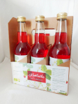 Lebendiger Bio Hibiskusblüten-Grüntee-Kombucha. In der 2ten Fermentation verfeinert mit einem Auszug aus Bio-Früchtetee.