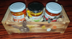 Selbst gebaute Kistal mit Kürbis Salat, Kürbis Chutney und Kürbis Marmelade zu je 212 ml.
